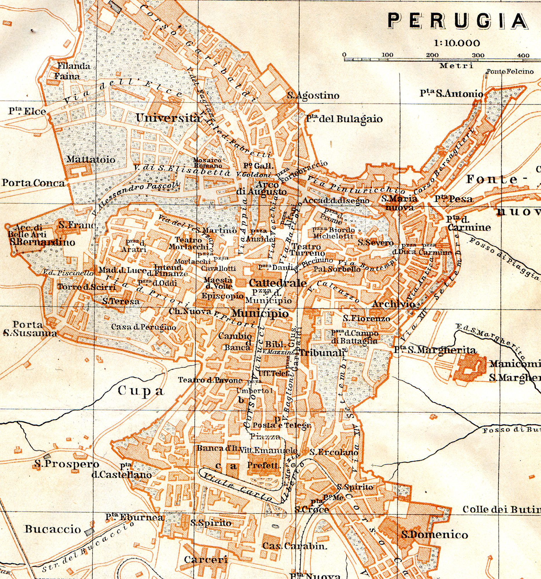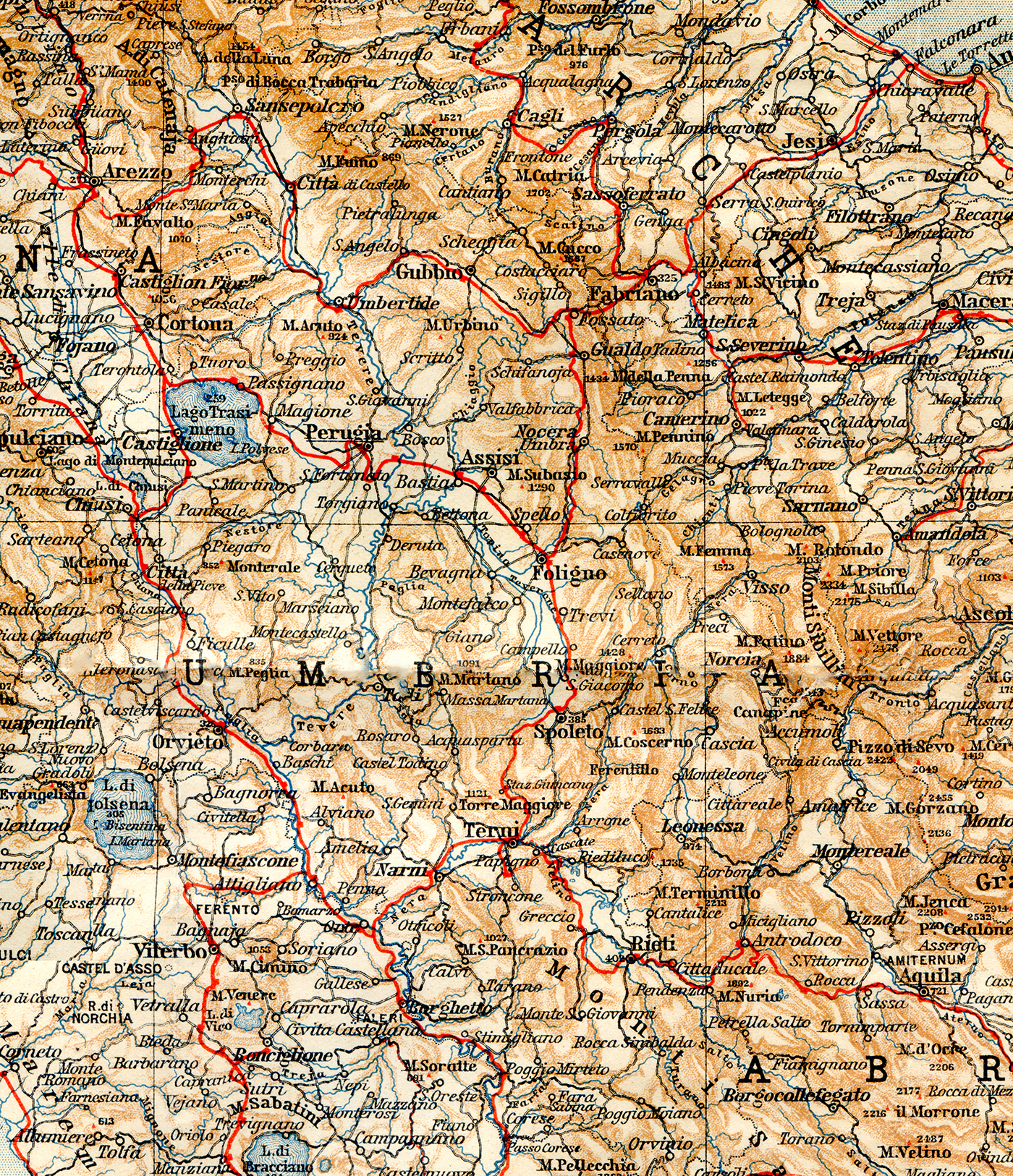 Umbria, Italy maps in the public domain, royalty free. These high-quality maps are free, at no charge. You may download the maps, but it will take a minute to open so be patient. You are free to use the maps for any purpose. The maps have no copyright because they were published before 1923.